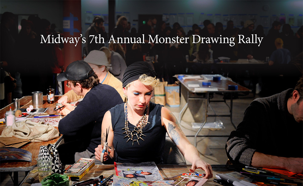 Last night I did Monster Drawing Rally with Midway Contemporary Art. The challenge is knowing I have only an hour to do whatever I'm doing. So if it's fast and loose, I'll give it a shot, and this year I added Crayolas to my supply kit.